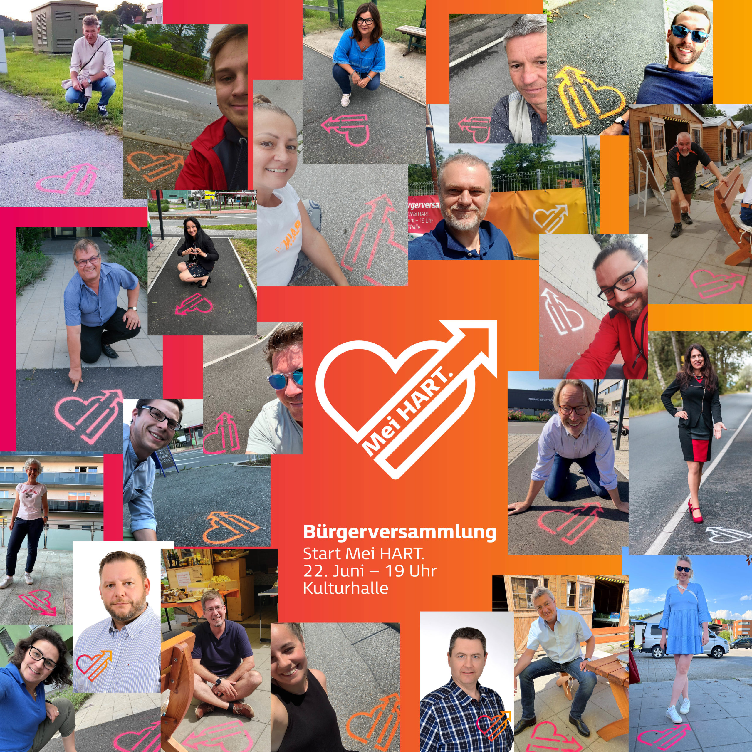 Ein wirklich starkes Zeichen unserer Gemeinderät*innen, die sich mit einem Selfie hinter den Prozess von MeiHART stellen und im Juni 2022 für die Teilnahme am Bürgerbeteiligungsprozess warben!